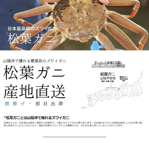 高給料亭で使用される日本最高グレードの松葉ガニ(ズワイガニ)をお届け!産地で揚がった朝に、鮮度良い状態で職人が茹でた美味しいボイルズワイガニです。漁期が11月から3月までと限定されておりますので、ぜひこの機会にお試し下さい。